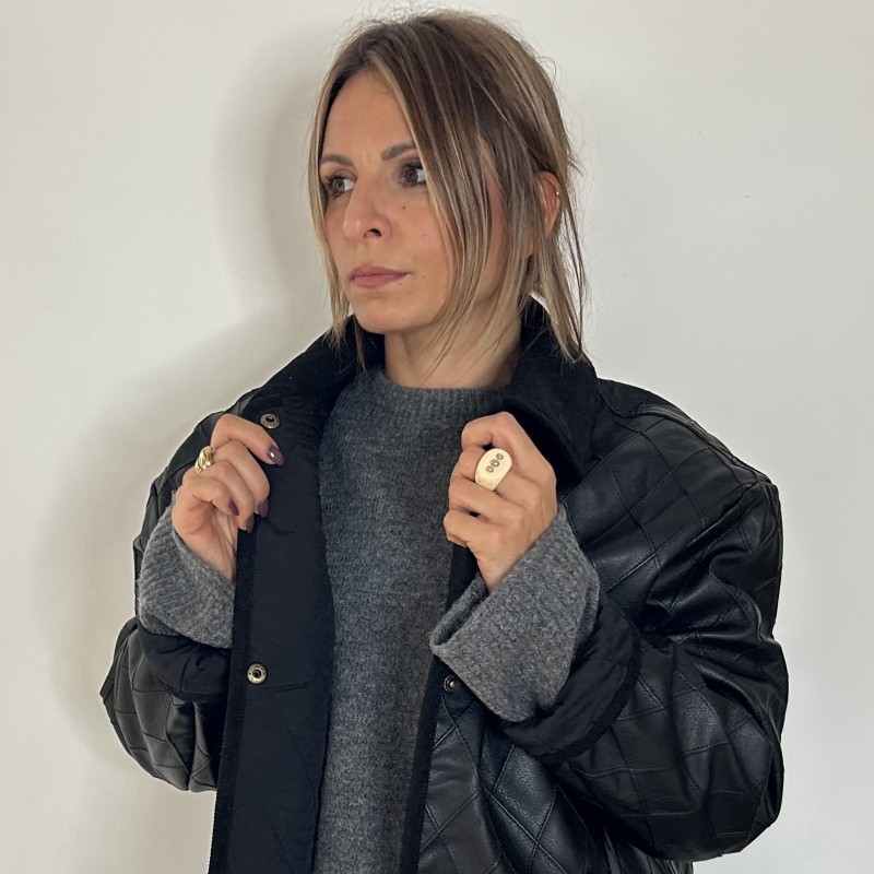 Chic et moderne, la veste ANGELA matelassée noire apporte une touche audacieuse à vos tenues. Sa coupe droite, son col contrastant et ses boutons métalliques offrent un style à la fois élégant et décontracté.