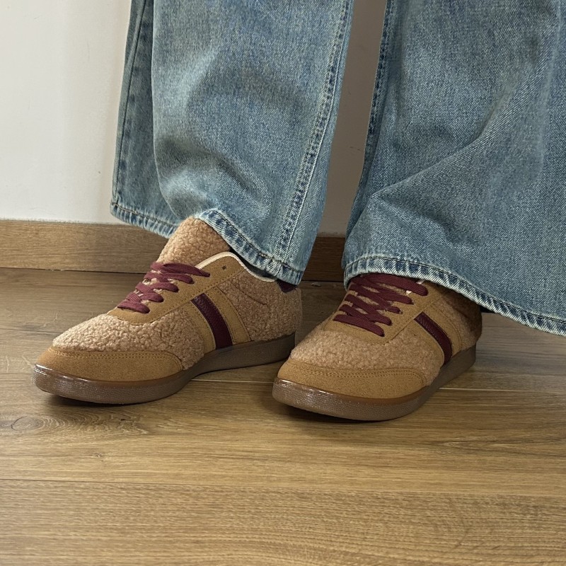 Supprimer du panier Liste de souhaits Aperçu rapide Sneakers GRUNG camel et grenat Prix 49,00 € Chariot Les sneakers GRUNG camel et grenat effet moutonné allient confort, originalité et chaleur. Leur texture douce façon sherpa et leurs détails en...