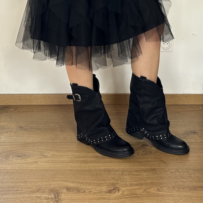 Les boots TEXANA noires en finition mate se distinguent par leur bride cloutée et leur boucle décorative. Confortables et stylées, elles apportent une touche rock et tendance à toutes vos tenues.