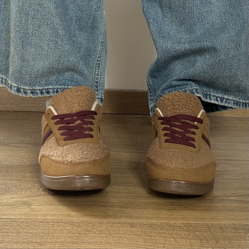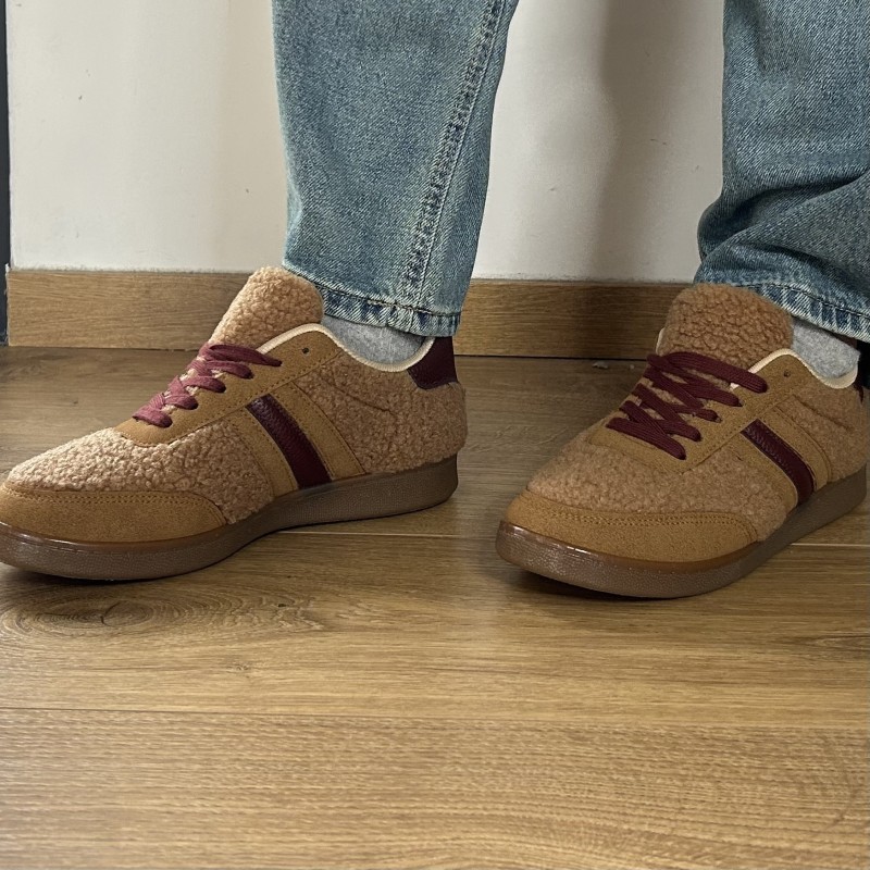 Les sneakers GRUNG camel et grenat effet moutonné allient confort, originalité et chaleur. Leur texture douce façon sherpa et leurs détails en suédine leur donnent une allure à la fois cocooning et tendance. Avec leurs lacets et bandes contrastantes bordeaux, elles apportent une touche de couleur subtile à toutes vos tenues d’automne-hiver.