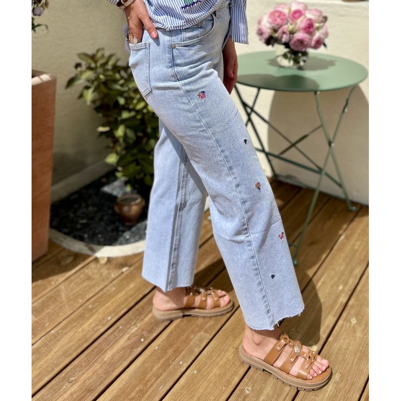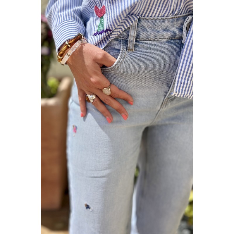 Jean sublime brodé de fleur coloré.