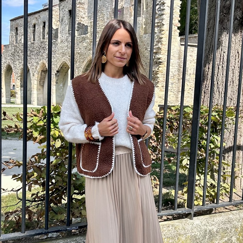 Gilet by L'Audacieuse, c'est le gilet côte de maille Brown à la dégaine 100% chic. On va adorer le porter version city avec sa jupe ou son jeans du moment. On aime déjà son look.
