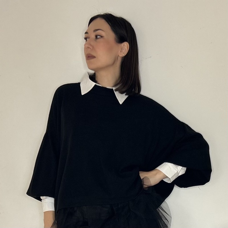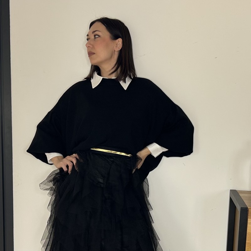 Le pull MILIA noir est un indispensable de votre garde-robe. Sa coupe ample vous offre une liberté de mouvement maximale, tandis que ses poignets resserrés apportent une touche structurée et moderne. Confectionné dans une matière douce et agréable, il vous offre un confort optimal tout au long de la journée.