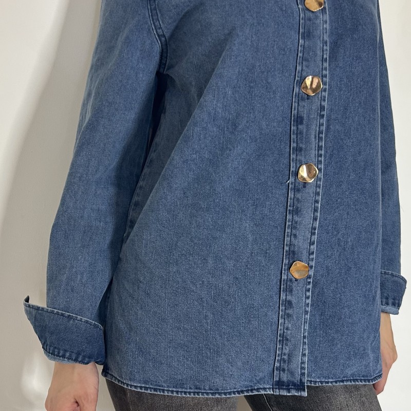 Affirmez votre style avec la chemise TYLAN bleu, une chemise en jean pensée pour les femmes qui osent. Confectionnée dans un denim de qualité, cette pièce intemporelle allie confort, caractère et élégance décontractée. Son design épuré et ses boutons contrastants en font un incontournable du dressing féminin.